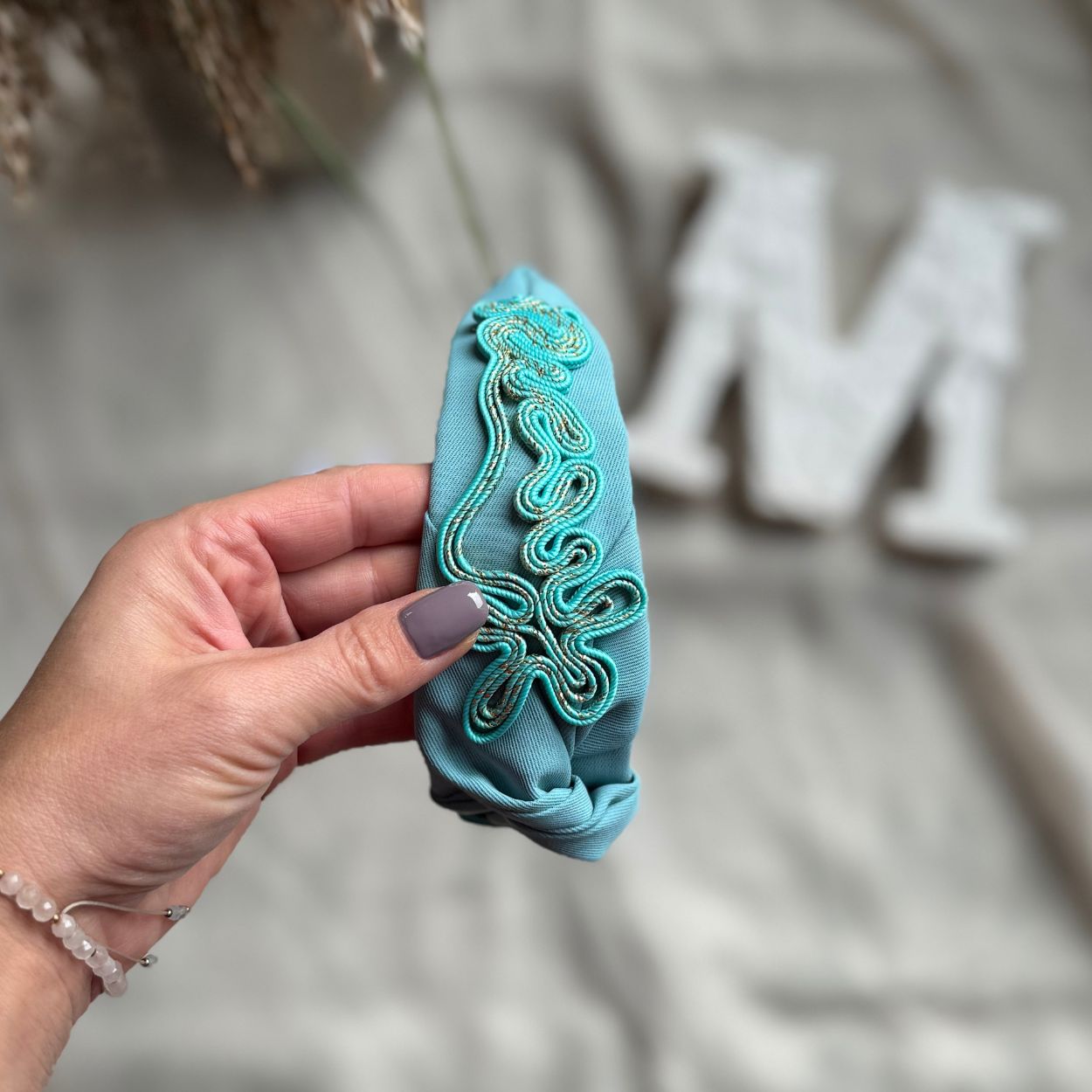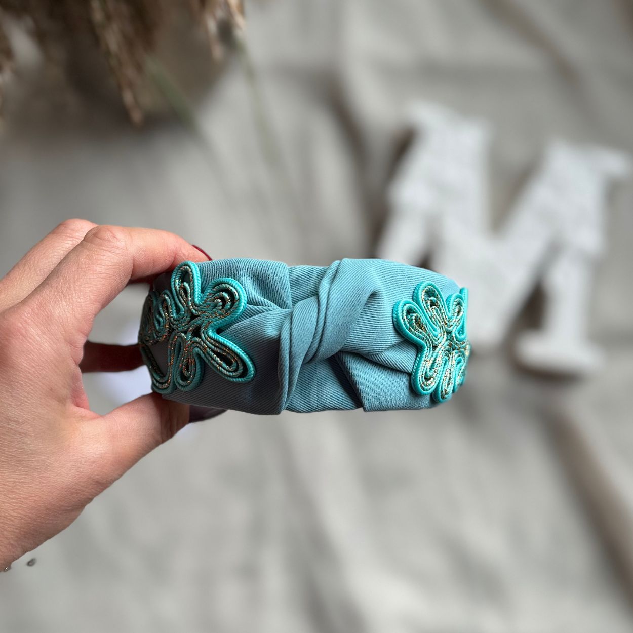 Błękitna ozdobna opaska z haftem sutaszowym – mahabi