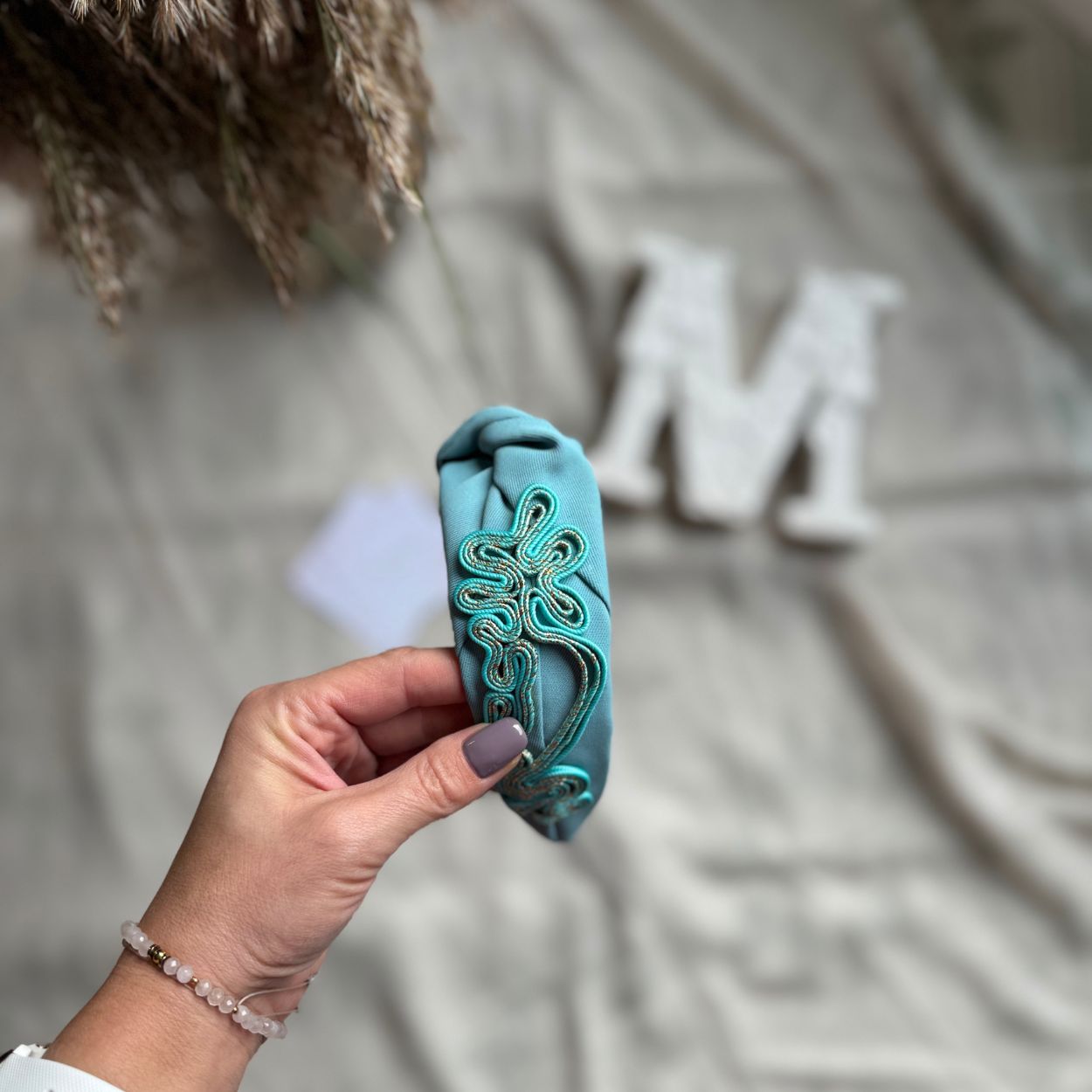 Opaska na komfortowej bazie z supełkiem – stabilna, lekka i wygodna nawet przy całodziennym noszeniu.