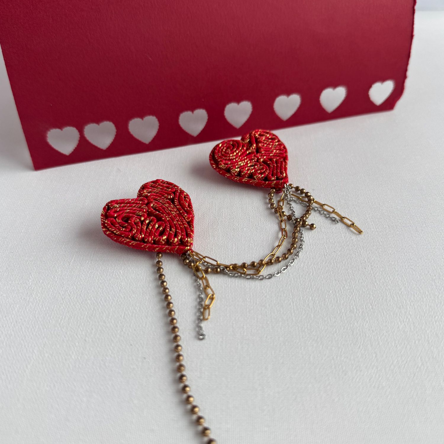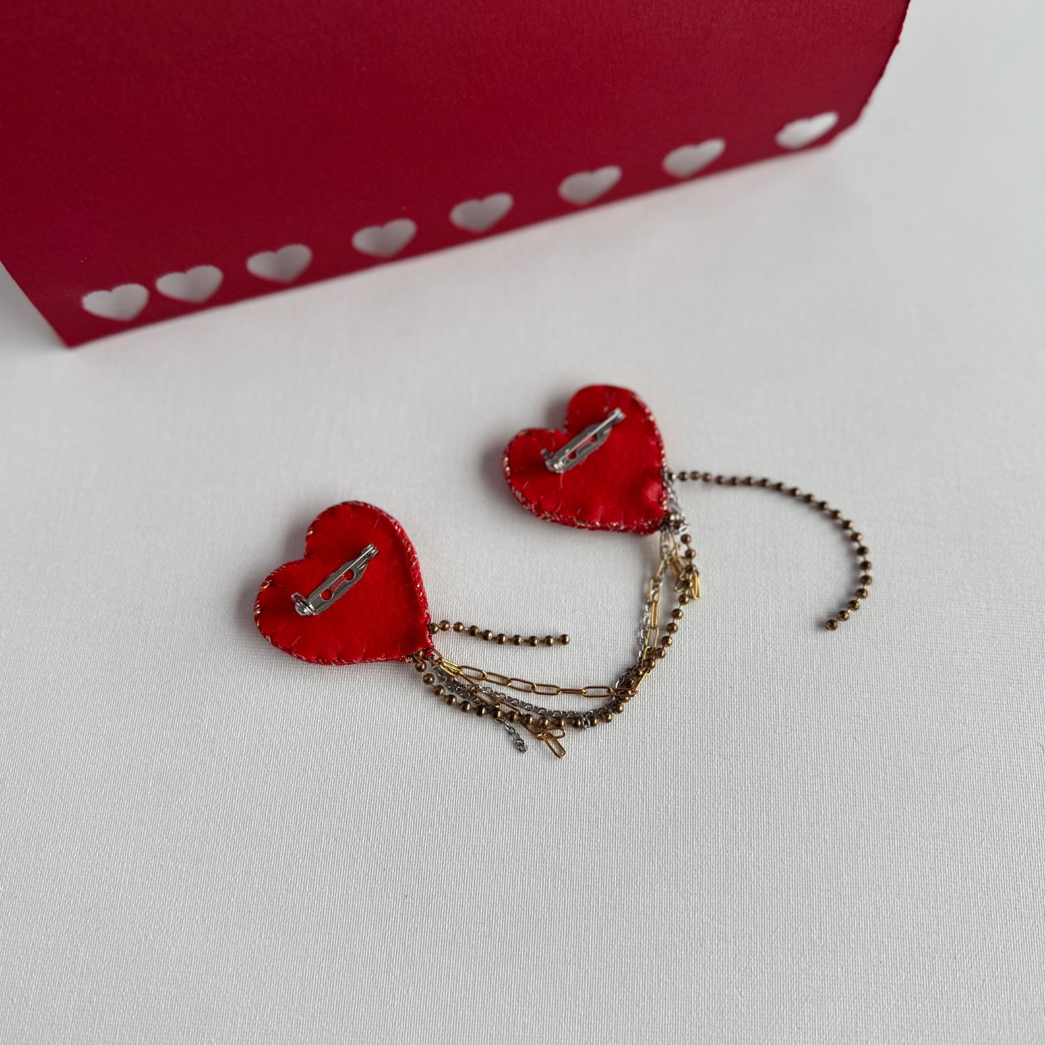 W kolekcji znajdziesz różne modele — od pojedynczych serc, przez podwójne, aż po serca z chwostami. Tył został starannie podszyty ekoskórą dla większego komfortu noszenia, a solidne zapięcie z zabezpieczeniem chroni przed przypadkowym odpięciem. Model z dwoma sercami które połączone są łąńcuszkiem. Zapakowane z najwyższą dbałością w materiałowy woreczek z upcyklingu, do każdego zakupu dołączam Kartę Afirmacyjną na Dzień Dobry.