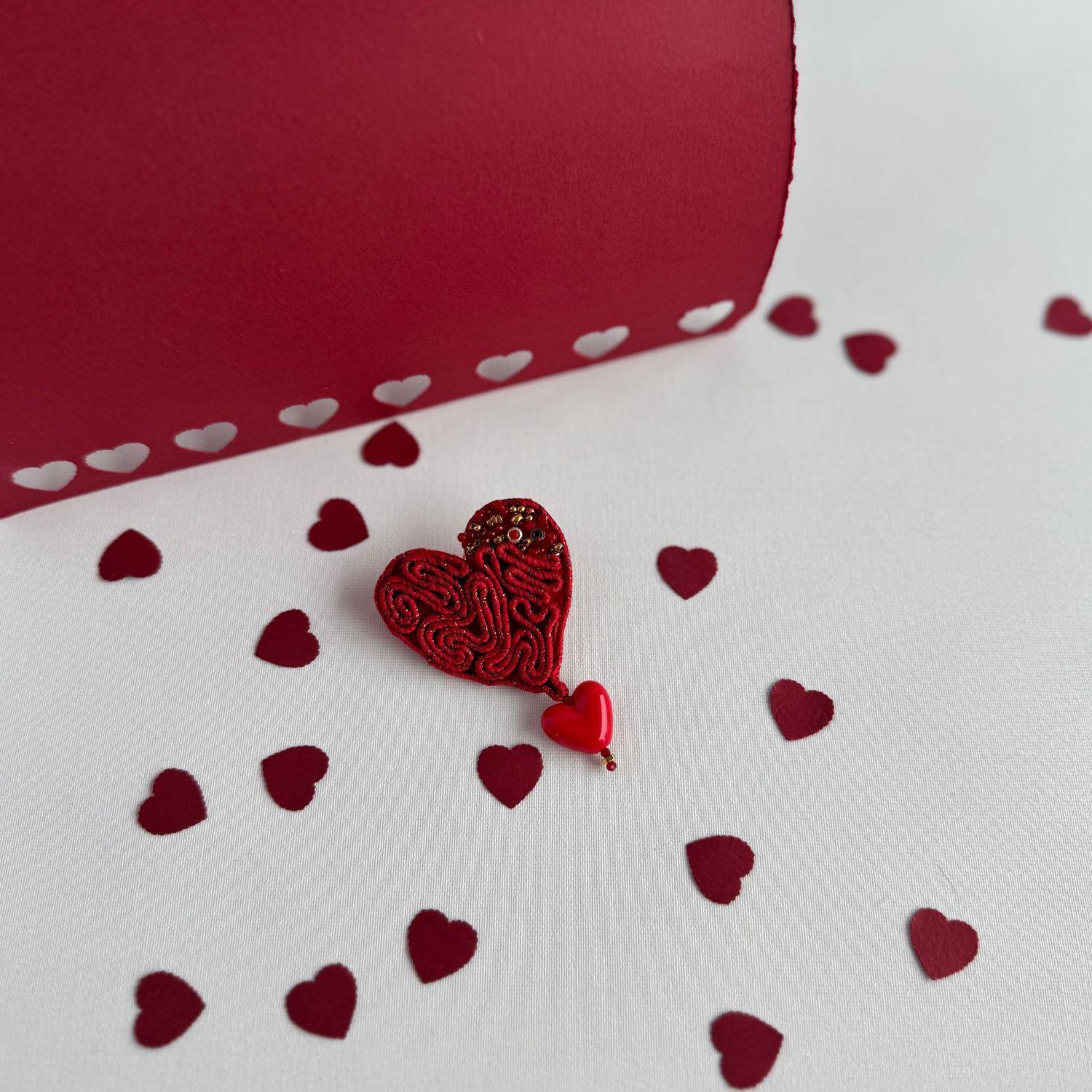 Broszka jest wyjątkowo lekka i ręcznie szyta metodą haftu sutaszowego z polskiego sznurka sutasz.