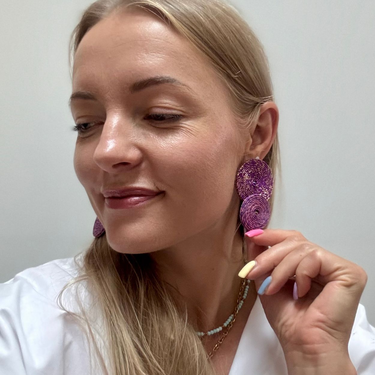 Kolczyki asymetryczne róż i fiolet z kolekcji "Infinity" – hołd dla wyjątkowości w najpiękniejszych barwach! Te unikalne i asymetryczne kolczyki są kwintesencją kobiecego piękna i niepowtarzalności.*Asymetryczne koła.*Wykonane są z polskiego sznurka sutasz.*W kolorze różowo-fioletowej mozaik i fioletu ze złotem.*Niewielki hematyt w centrum.*Pomimo swojej wielkości są bardzo lekkie.*Wymiary szerokość: ok 4,5 cm, długość dłuższego kolczyka 9,5 cm*Sztyfty ze stali szlachetnej w kolorze złotym.*Tył wykończony koralikami Toho i podszyty ekoskórą. W sklepie znajdziesz całą kolekcje Infinity.