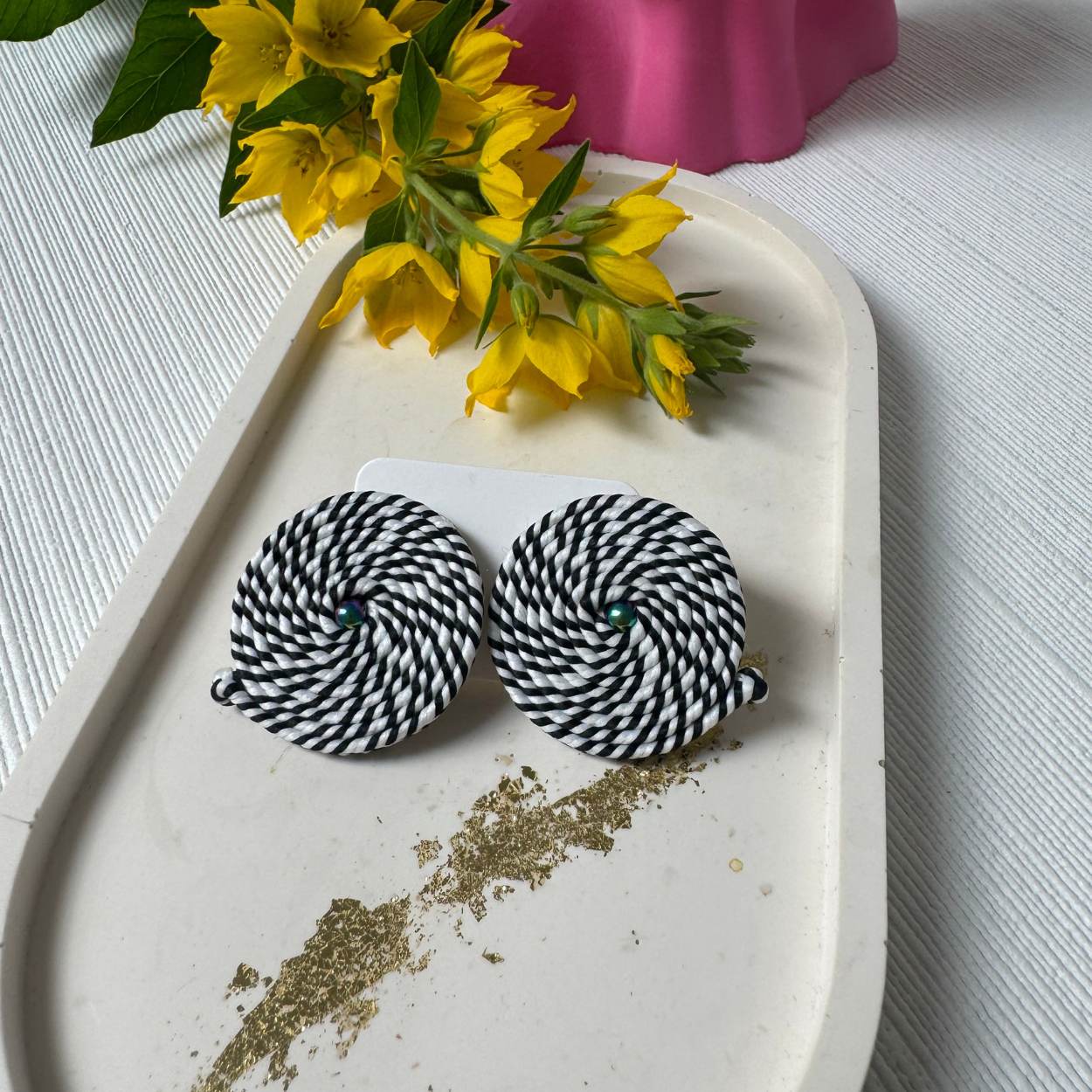Kolczyki biało-czarne małe koła