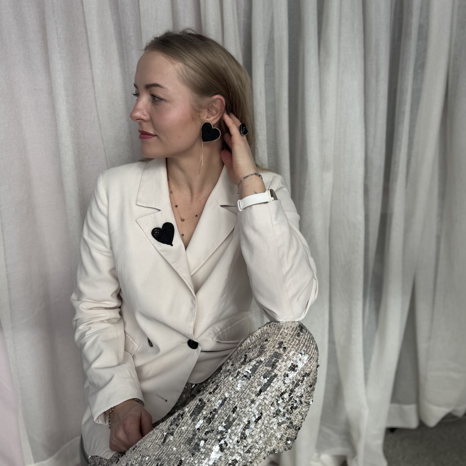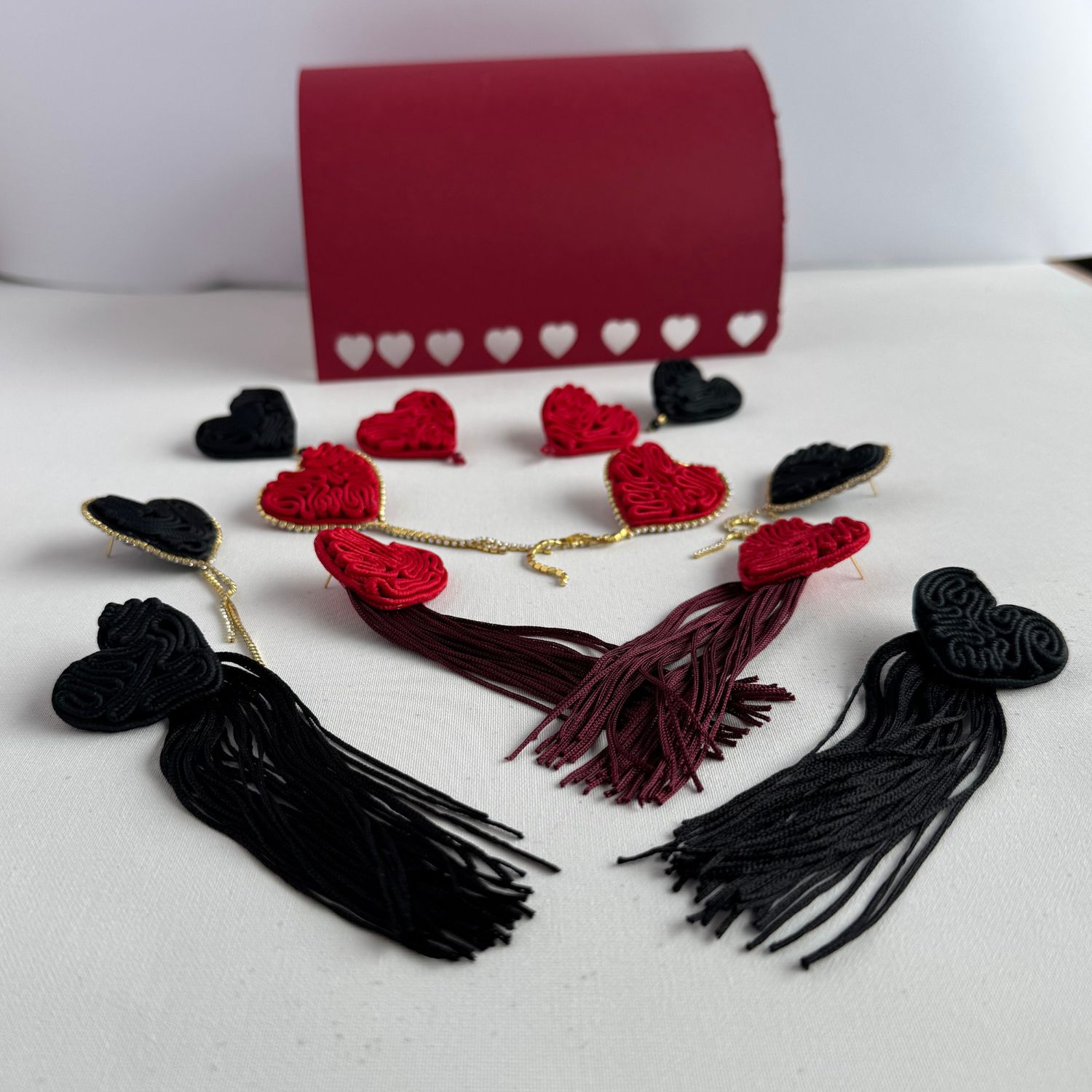 Kolekcja CUORE to biżuteria, która nie pozostaje niezauważona. Przyciągają spojrzenia i dodają stylizacji wyrazistości — nawet wtedy, gdy masz na sobie coś bardzo prostego. Model został wykonany ręcznie techniką haftu sutaszowego, z ogromną dbałością o każdy detal. Chwosty z cyrkoniami poruszają się przy każdym kroku, tworząc lekki, połyskujący zmysłowy efekt. Choć wyglądają efektownie, są niezwykle lekkie i komfortowe w noszeniu — możesz zapomnieć, że masz je na sobie. Tył kolczyków został podszyty ekoskórą naturalną, co zwiększa trwałość i wygodę. Bigle wykonane są ze stali chirurgicznej, odpowiedniej także dla wrażliwych uszu. Biżuteria tworzona w krótkich seriach. Zapakowane z dbałością o każdy szczegół, w materiałowy woreczek powstały z upcyklingu, do każdego zakupu dołączam Afirmacyjną Kartę na Dzień Dobry