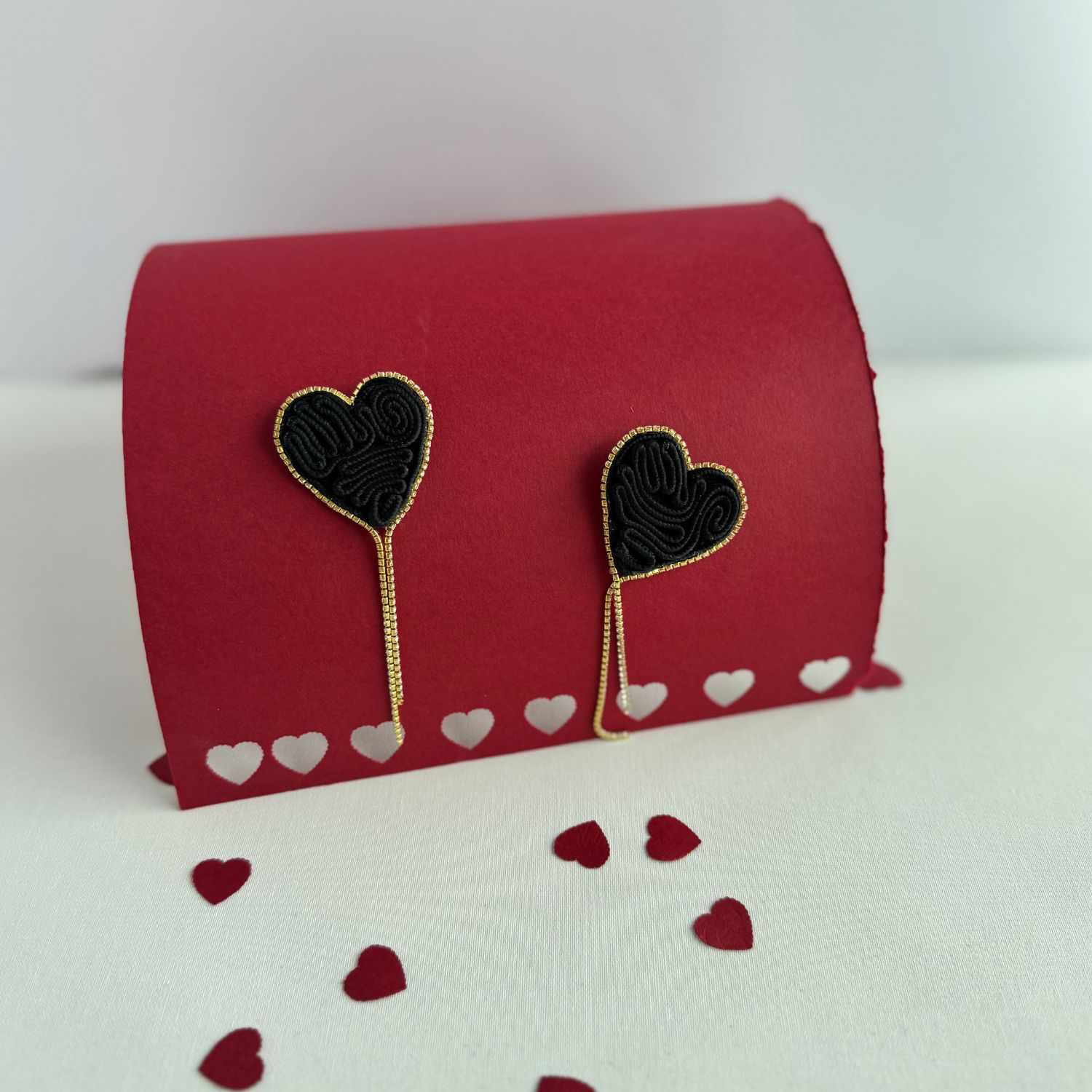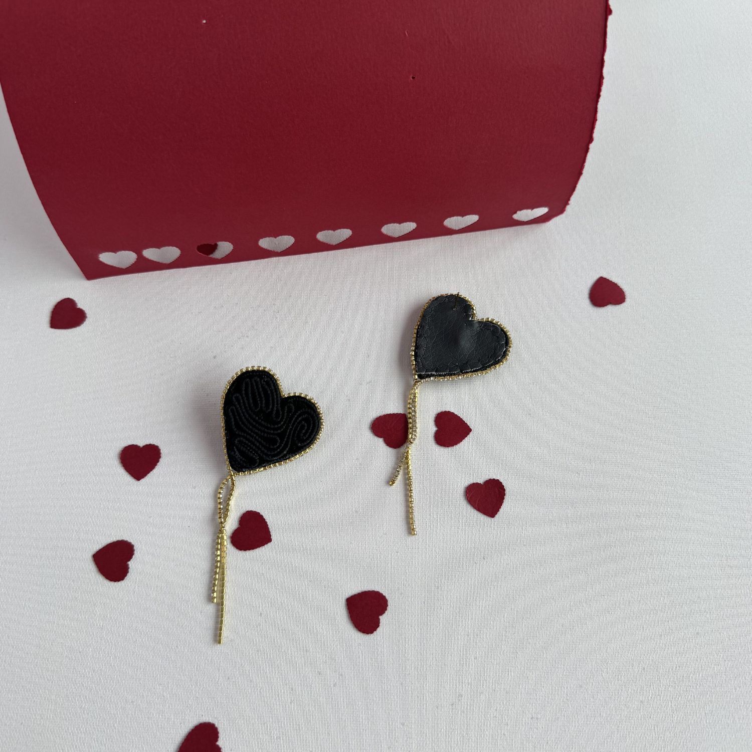 Ręcznie tworzone kolczyki w kształcie serca z długimi chwostami z cyrkoni.