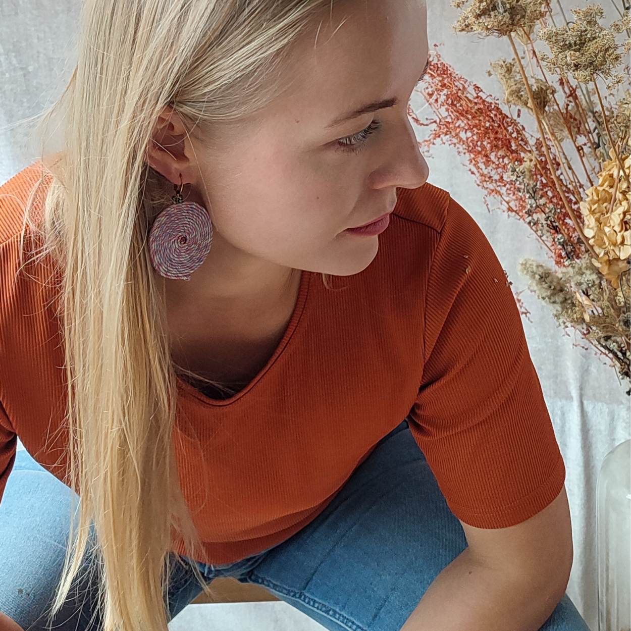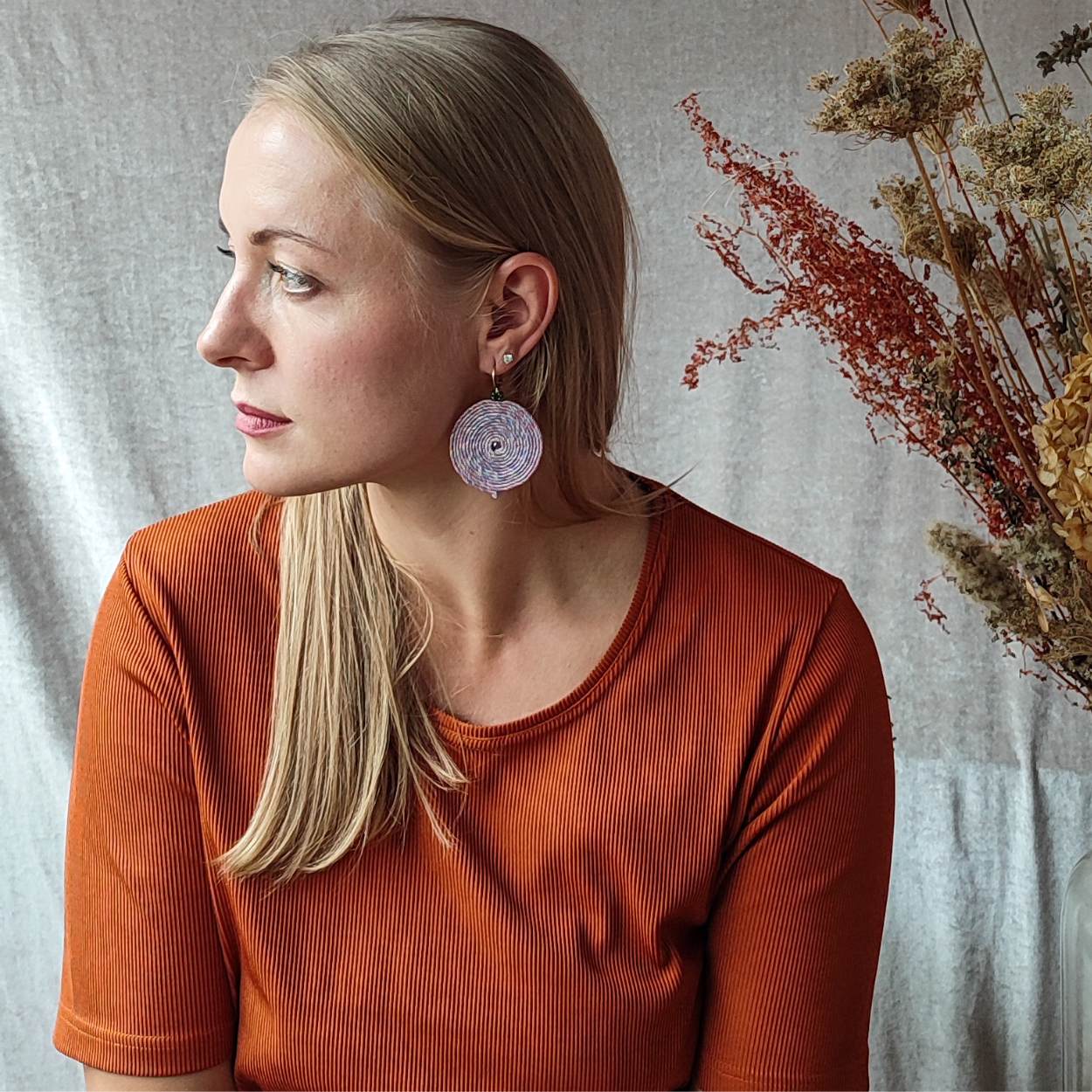 *Kolczyki w kolorze pastelowego melanżu: róż, fiolet, wrzos, biel, błękit.